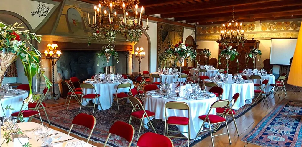 Le repas de noces, ponctué d'animations, sera servi à table dans la grande salle de justice. Il sera suivi d'une soirée dansante, qui se poursuivra jusqu'au bout de la nuit. Des hébergements seront disponibles sur place pour ceux qui le souhaitent. |